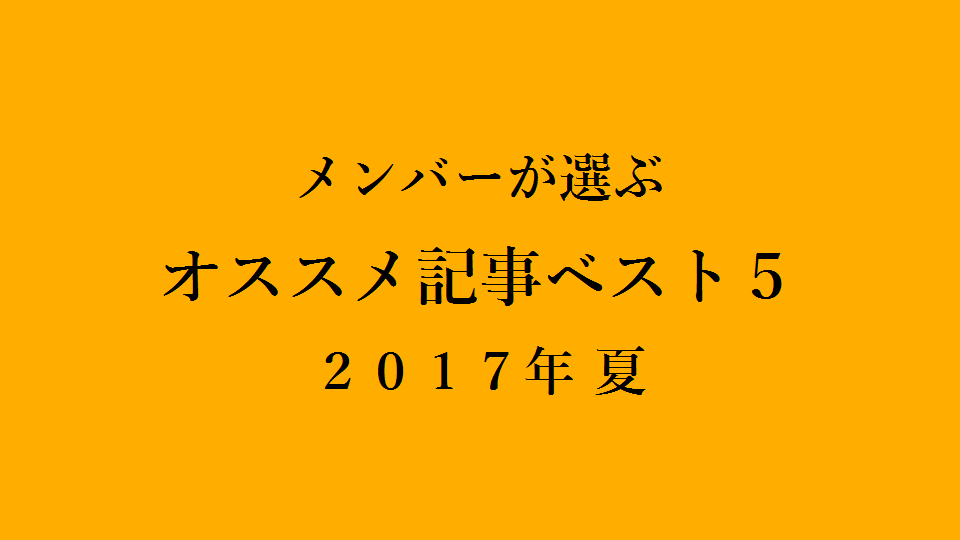 - 【まとめ】メンバーが選ぶ「オススメ記事ベスト5」2017年 夏