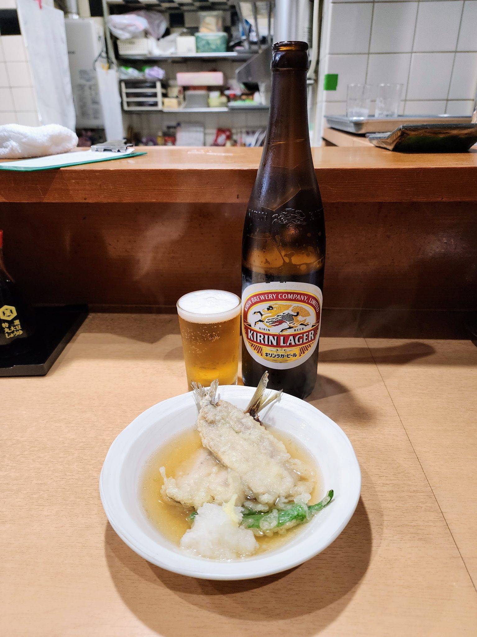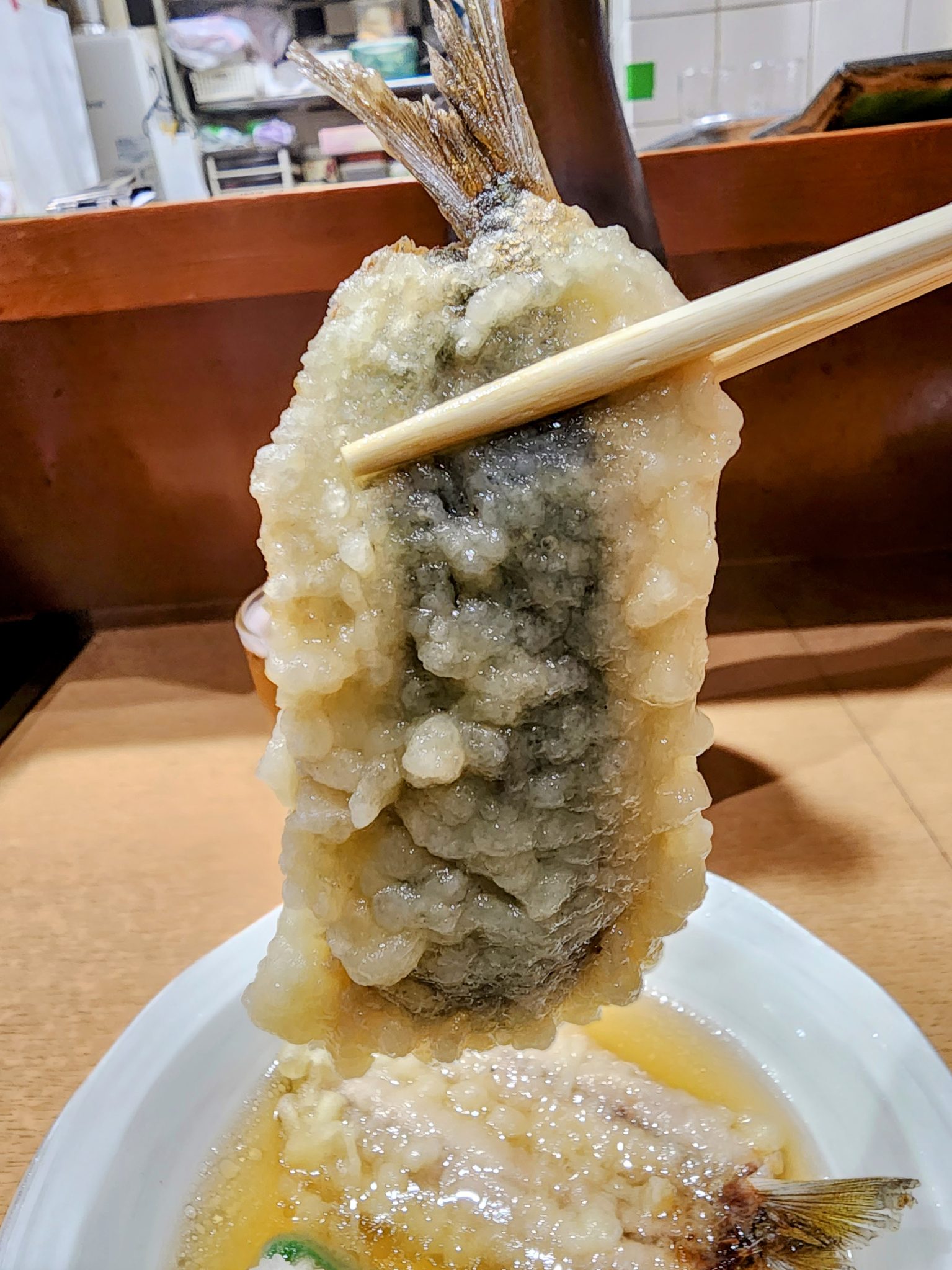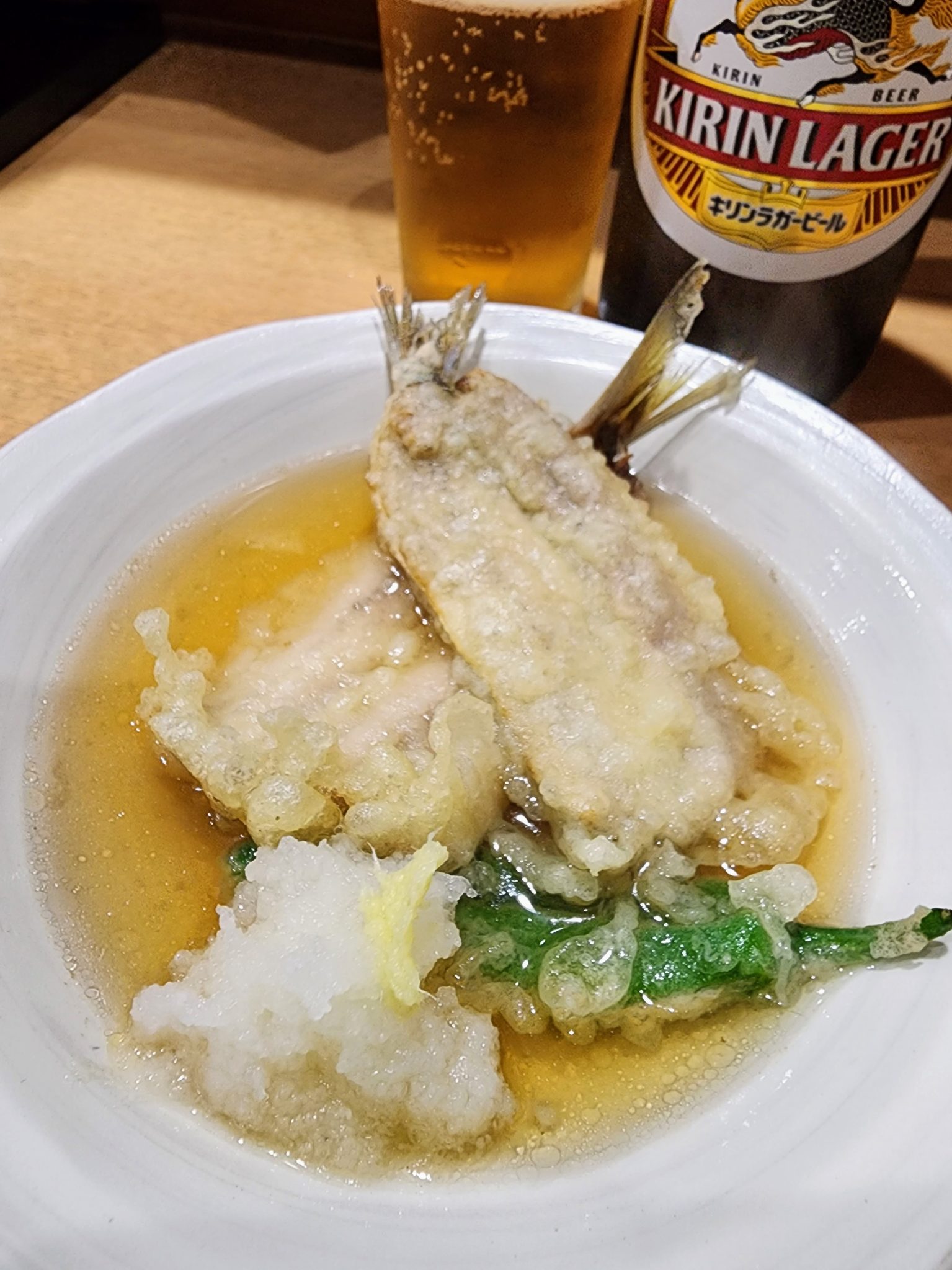 「イワシの天ぷら おでんの汁がけでぇ~」