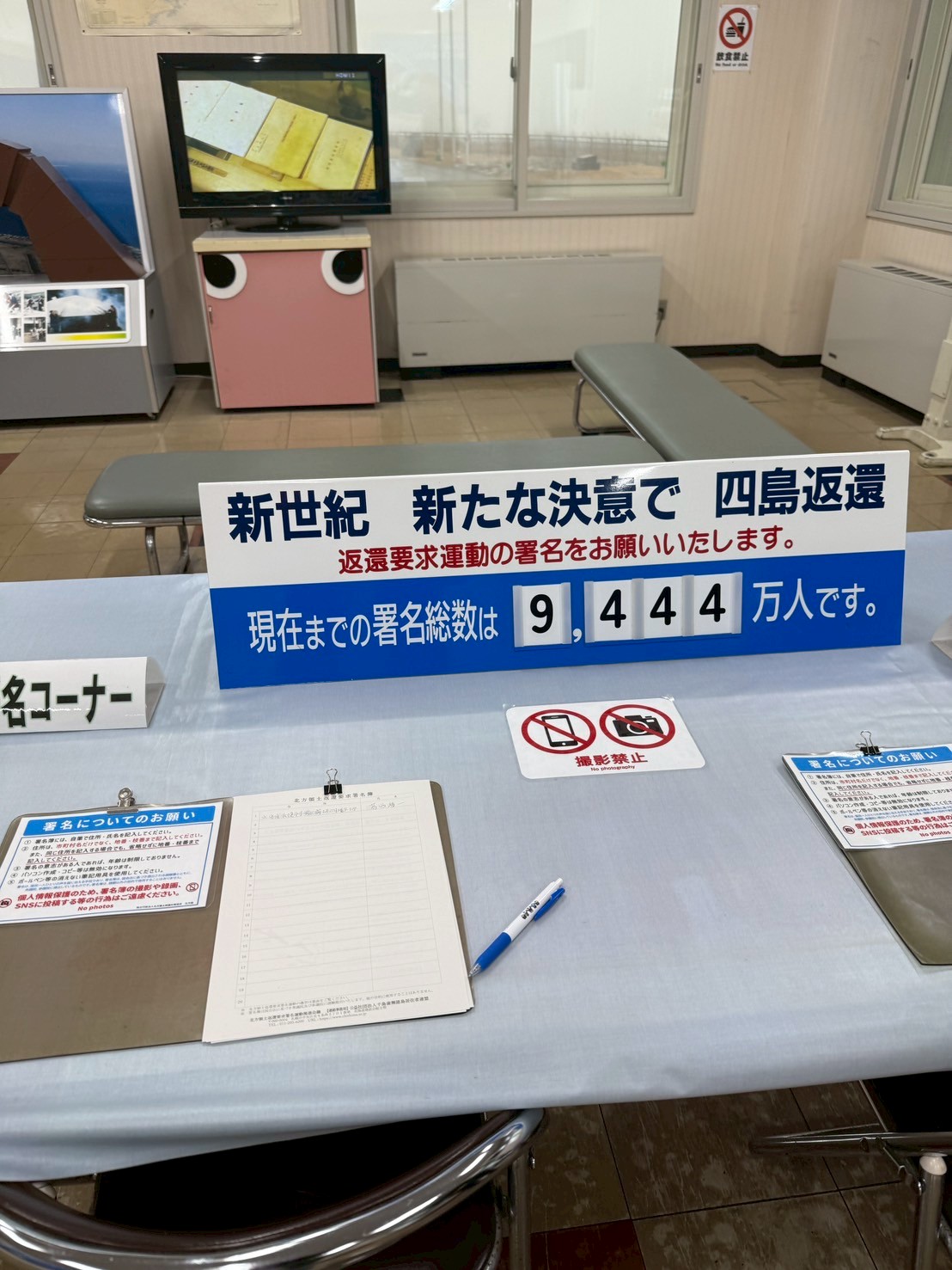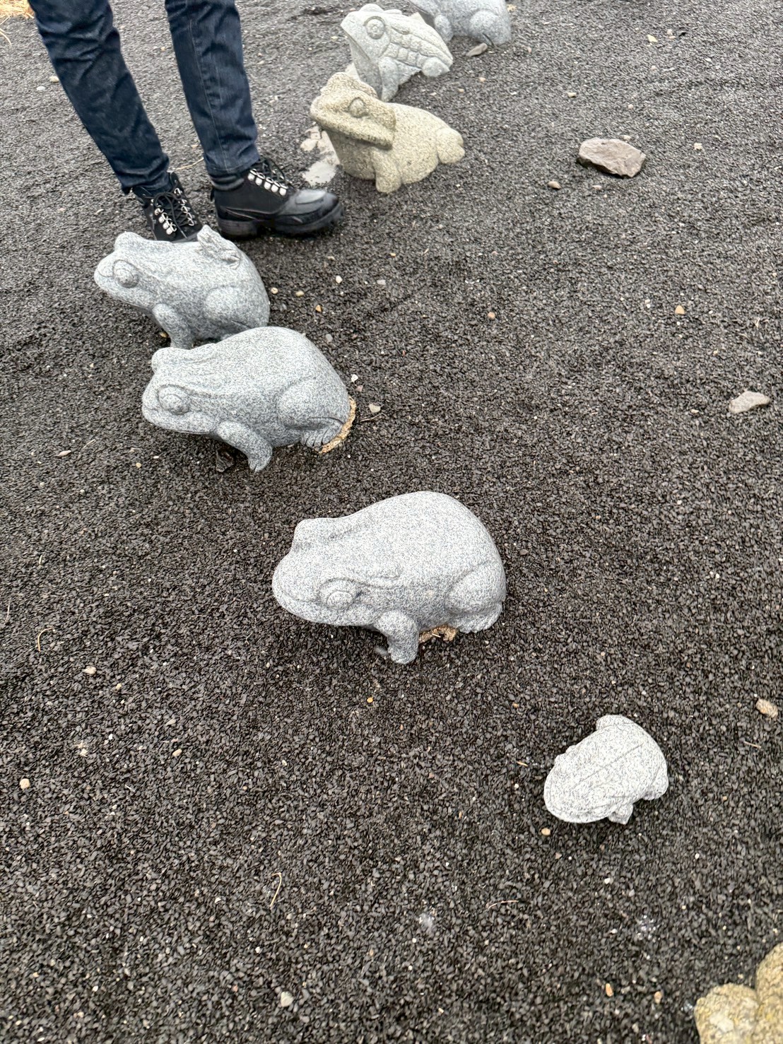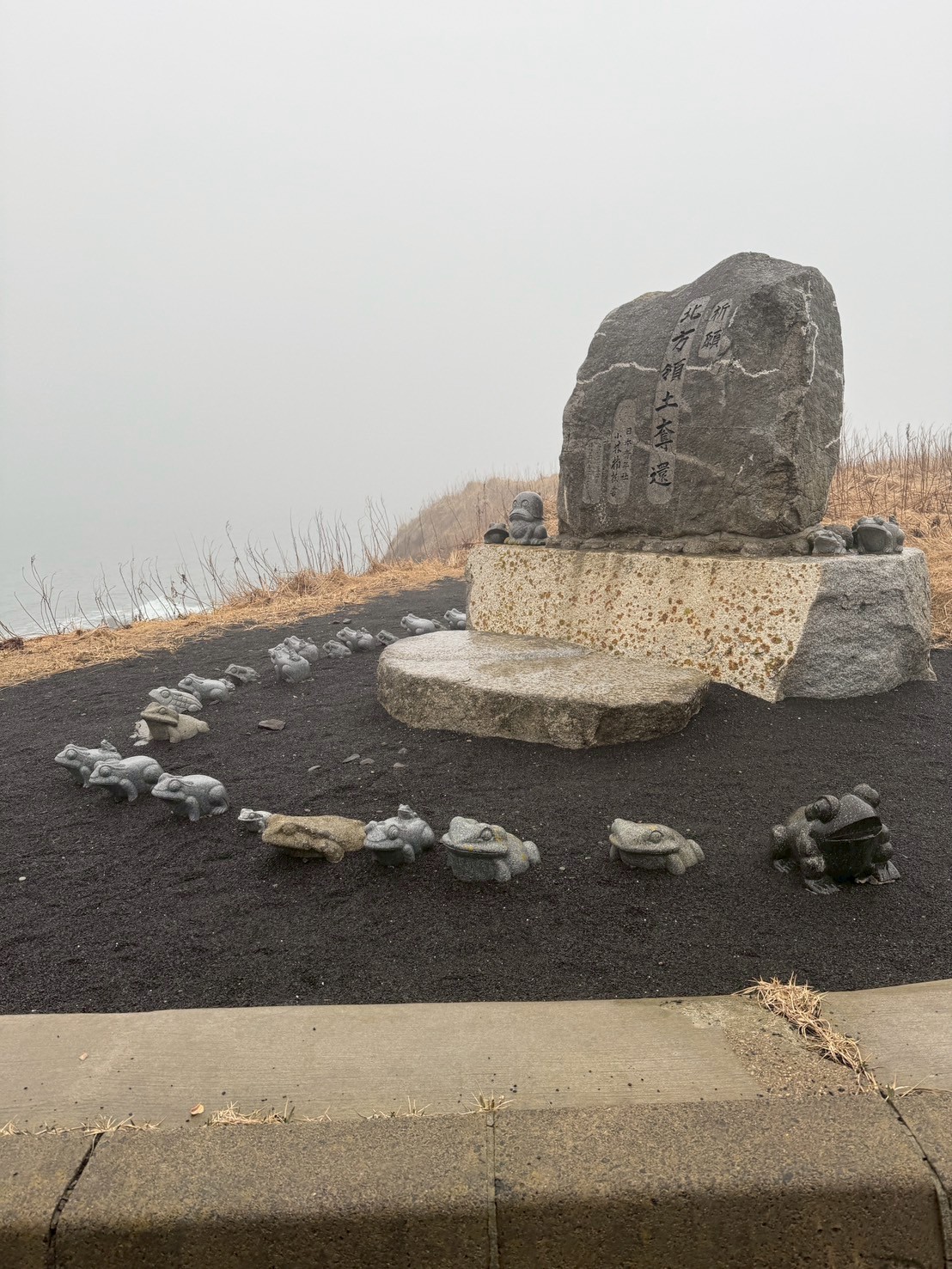 「多分なんですけど、北方領土を返す(かえる)という意味でカエルの置物を置きに来る方が居るみたいですね。」