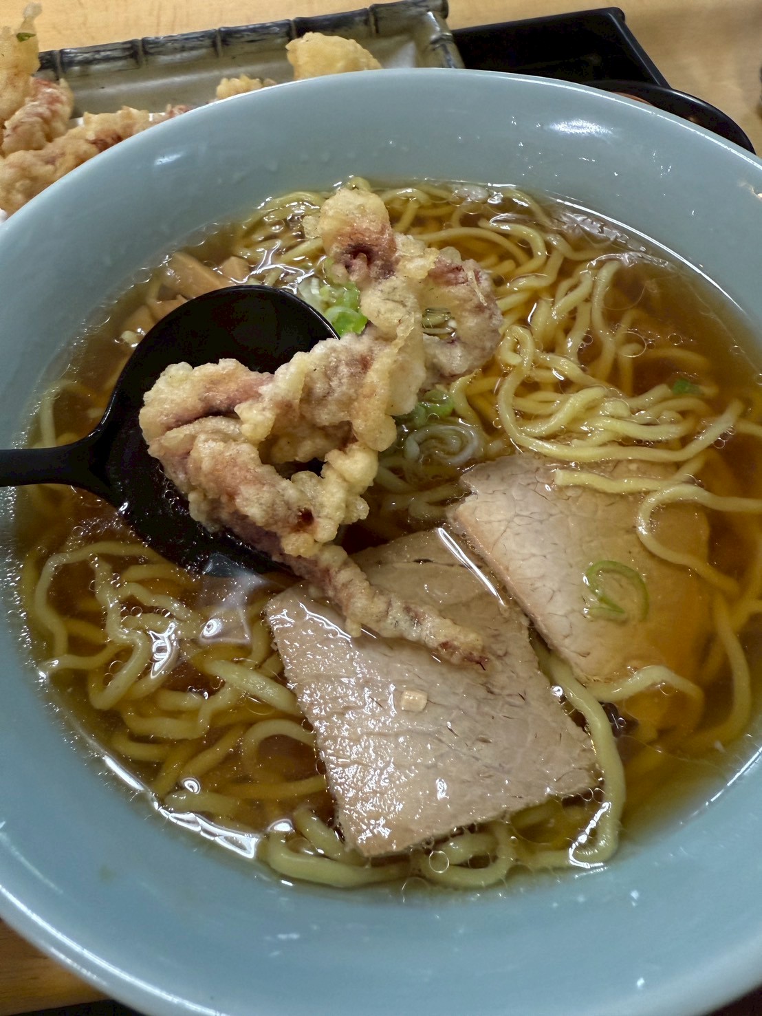 このスープだからこそマッチするゲソ天のスペシャルコンボ。