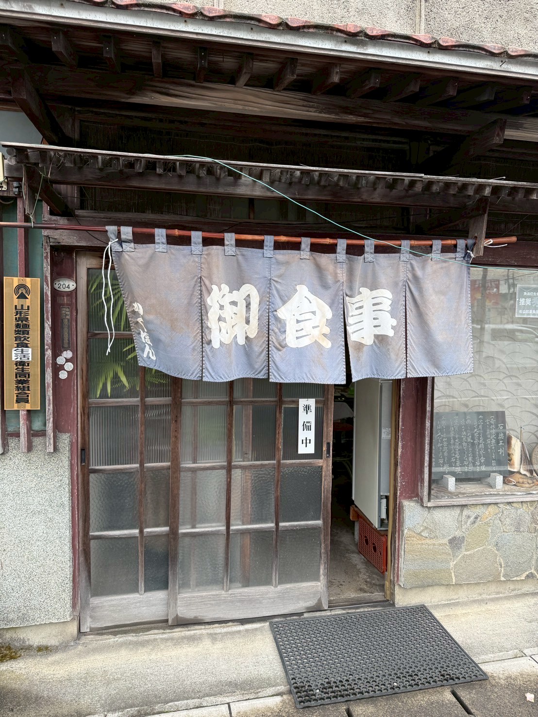 店名が分からないが暖簾の『御食事』の文字が”おいでおいで”している。