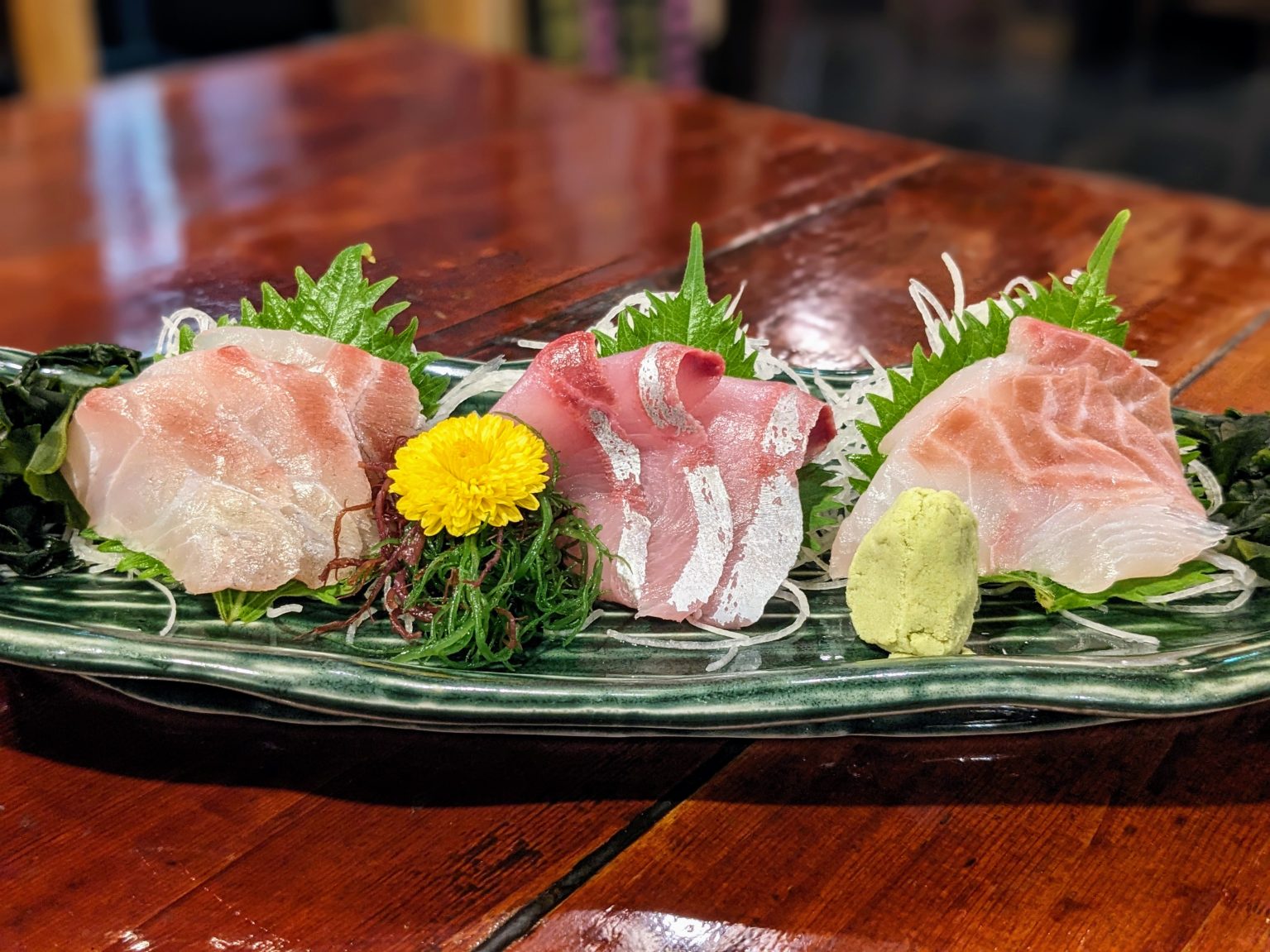 真鯛はネットリと白身の王道の貫禄、ひらまさはキレのある色白色男。兄貴分のすずきは、旨味で舌を包むような……そう、包容力のある味わい。
