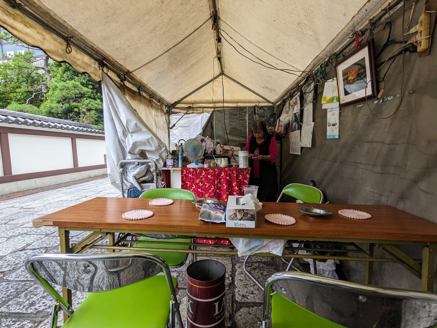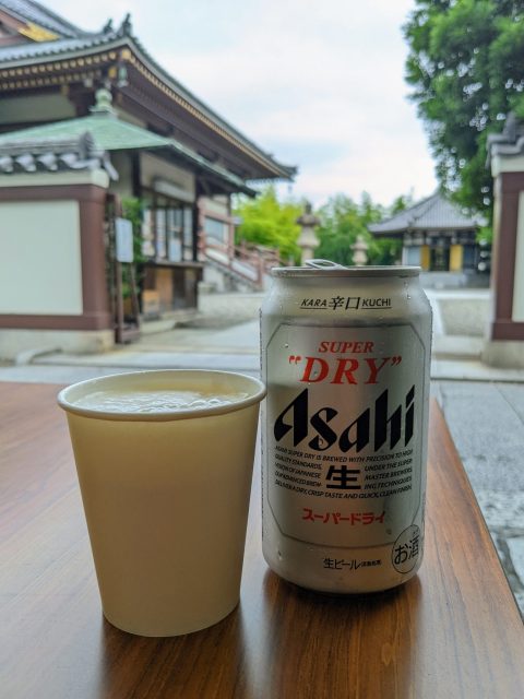 大至急、お邪魔する。テントの中にいる女将さんがひとり、酒の入った冷蔵庫も見つけた。さっそくお願いして、昼間からビールを一杯。座っているところから仏像様がこちらを見ているという、なんとも背徳感。後で調べても、その店の情報はどこにもない、まさしく〝名無しの酒場〟で、まるで幻のような存在だった。