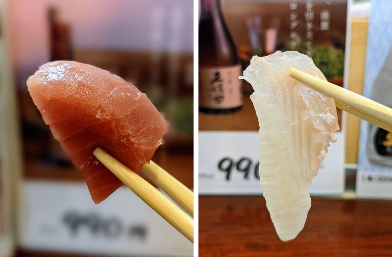カンパチはコク深い旨味がクセになる味わいで、本マグロは濃厚かつ芳醇な口どけを愉しめる。