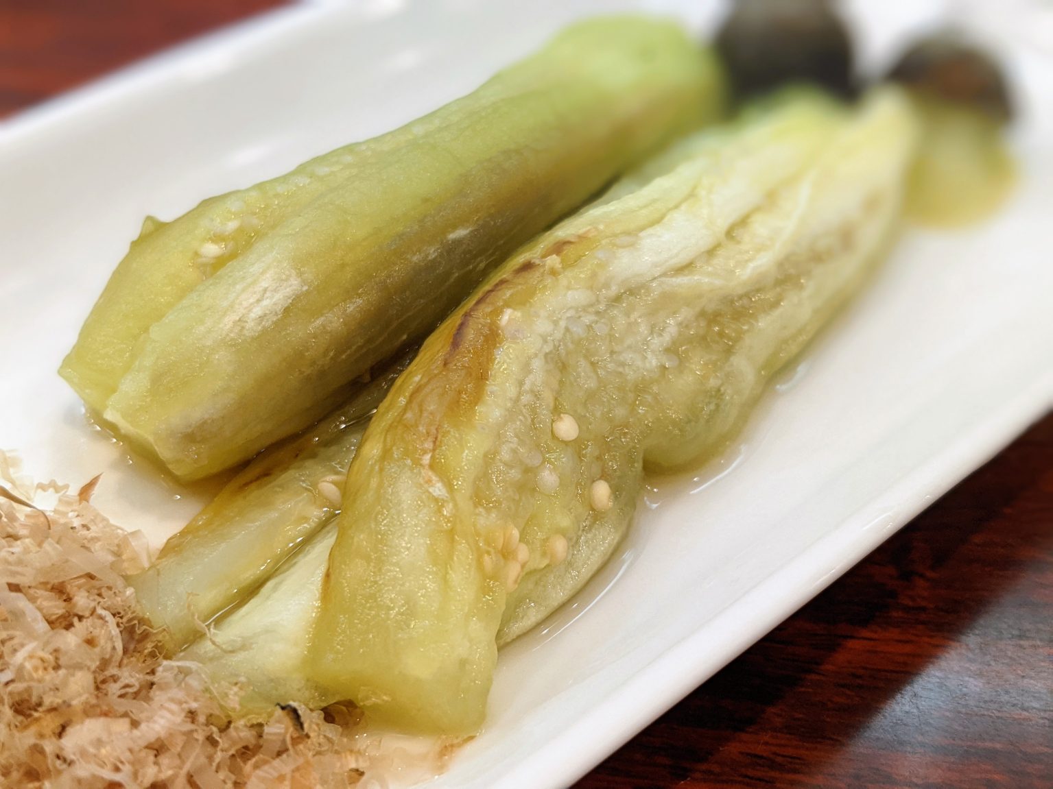こんがり焼きたての『焼きナス』は、香ばしい皮とジュルトロな食感が絶品。コクのある旨味がしみ込んでいて、まろやかな甘みが口いっぱいに溢れる。