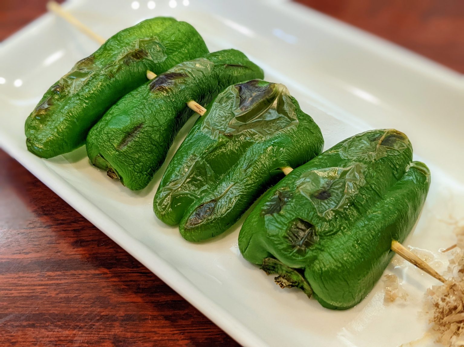 ご一緒に『ピーマン』はいかがでしょうか。サクッと香ばしい焼きピーマンは、サクサクシットリな食感が楽しい。さわやかな旨味が凝縮され、クセになるほろ苦さがアクセント。〝野菜+焼く=おいしい〟という、野菜はシンプルが正解。