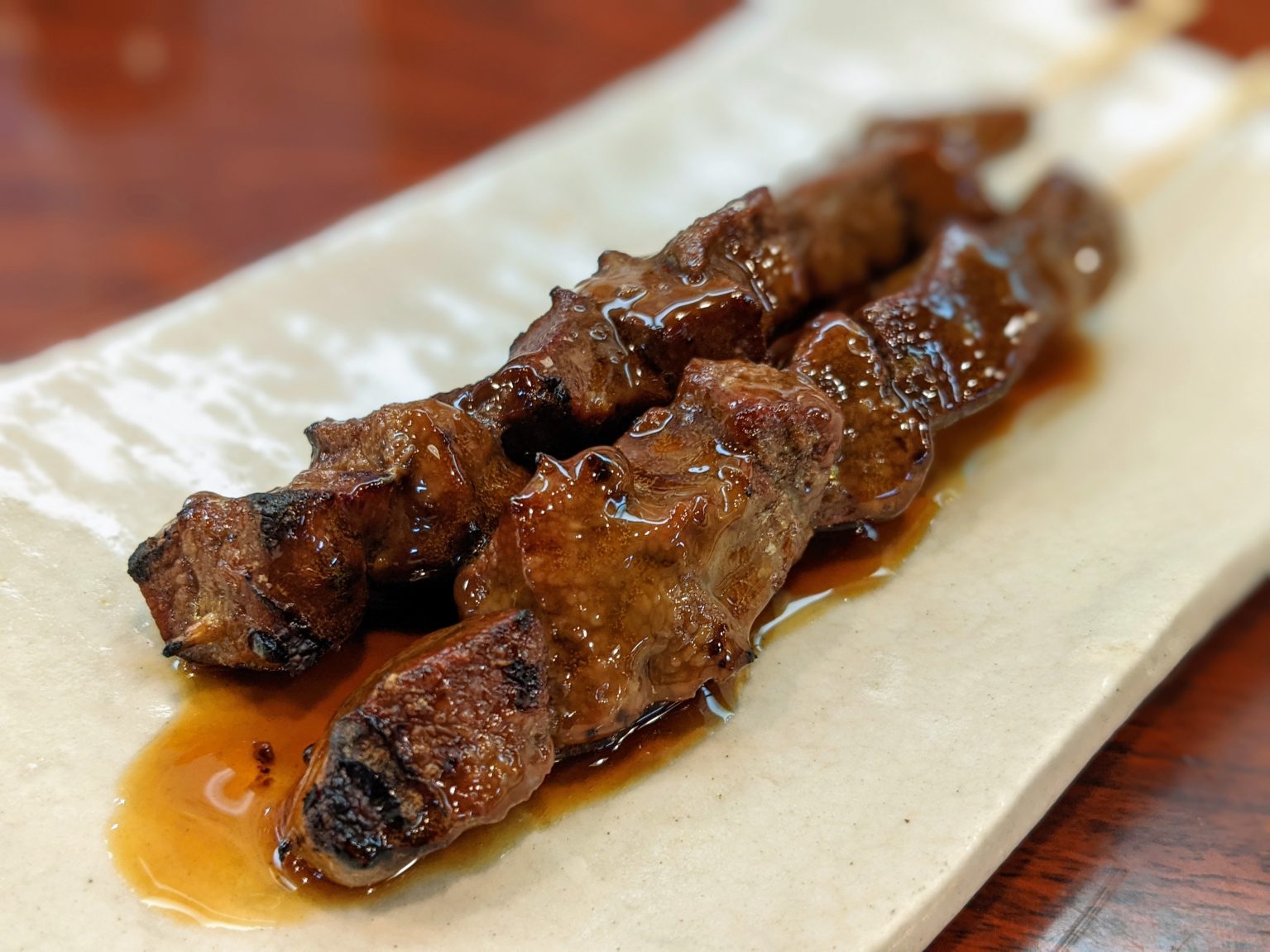 大好物の『豚レバ』は、濃厚なコクとうま味が特濃級。香ばしく焼き上げられ、口どけのよい食感がやみつきになる。