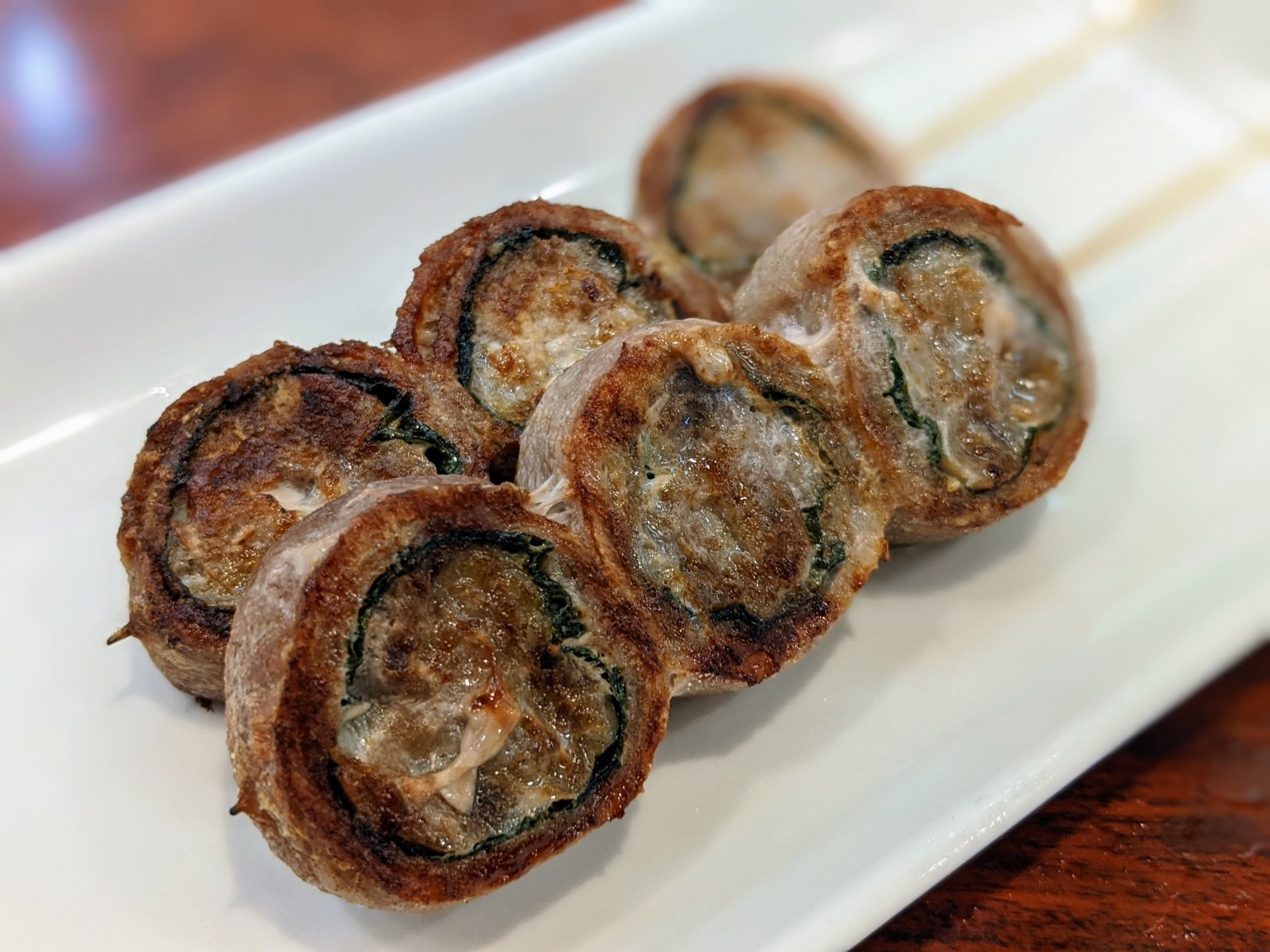 豚ついでの『豚シソ巻き』は、ジューシー&ジューシーな肉汁とシソの爽やかな風味が融合した絶品。カリサクと焼きたての香ばしさと、コク深い旨味が永久にホッピーのお供になることでしょう。