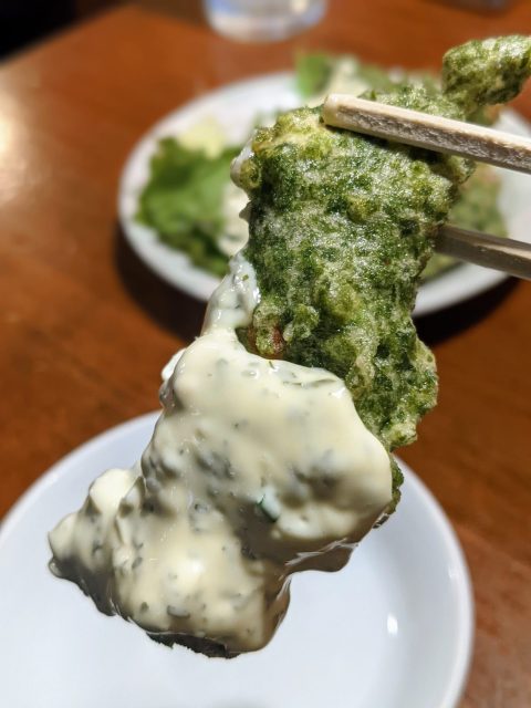 最後にやってきたのは『タルタルちくわ』! これはもう、超ヒットの予感。青のりの香りがふわりと立ち、ちくわのサクふわな食感に、〝マヨリー感〟強めのタルタルのクリーミーなコク。やみつきになるとは、こういう味のことを言うのだろう。