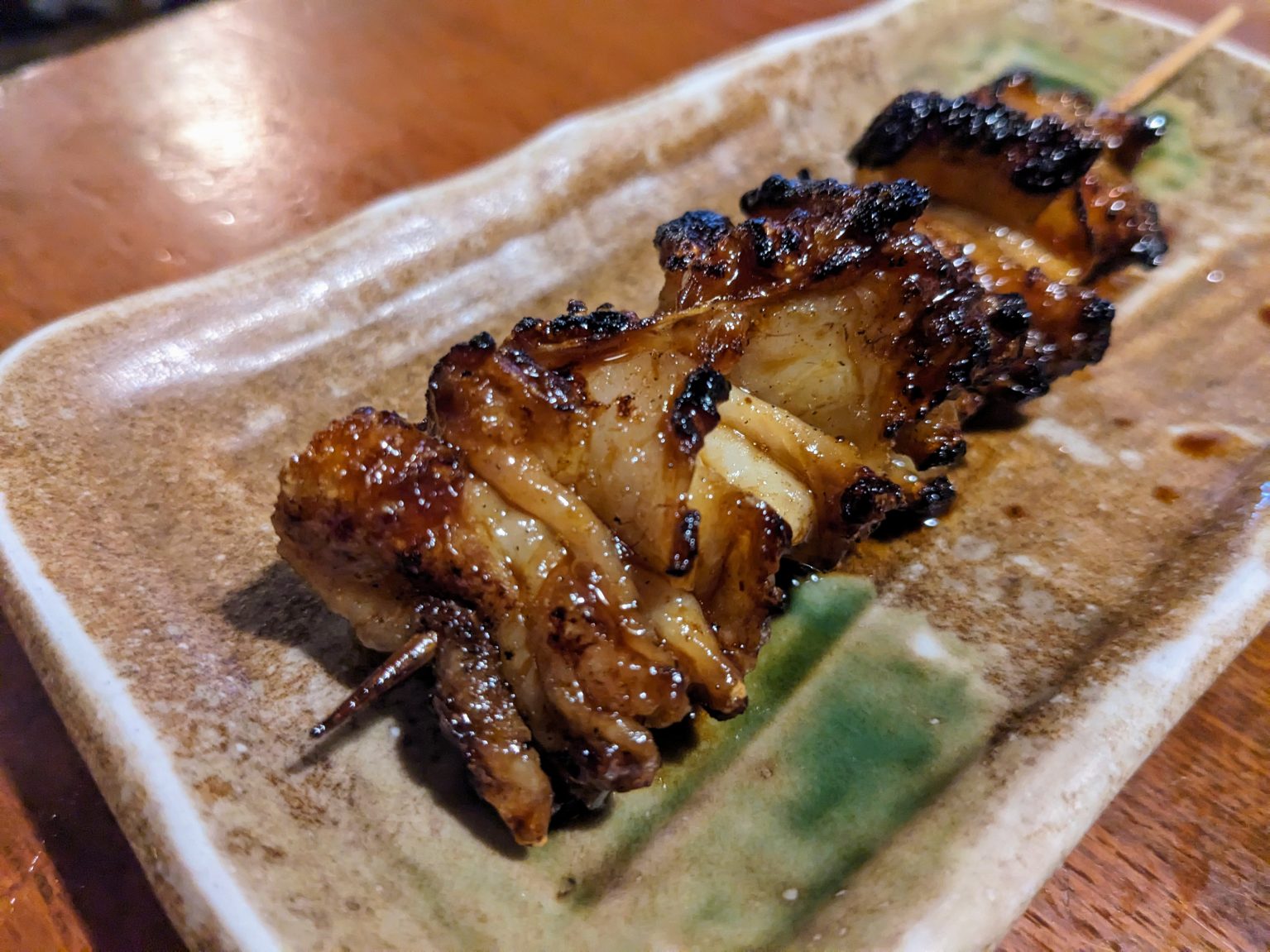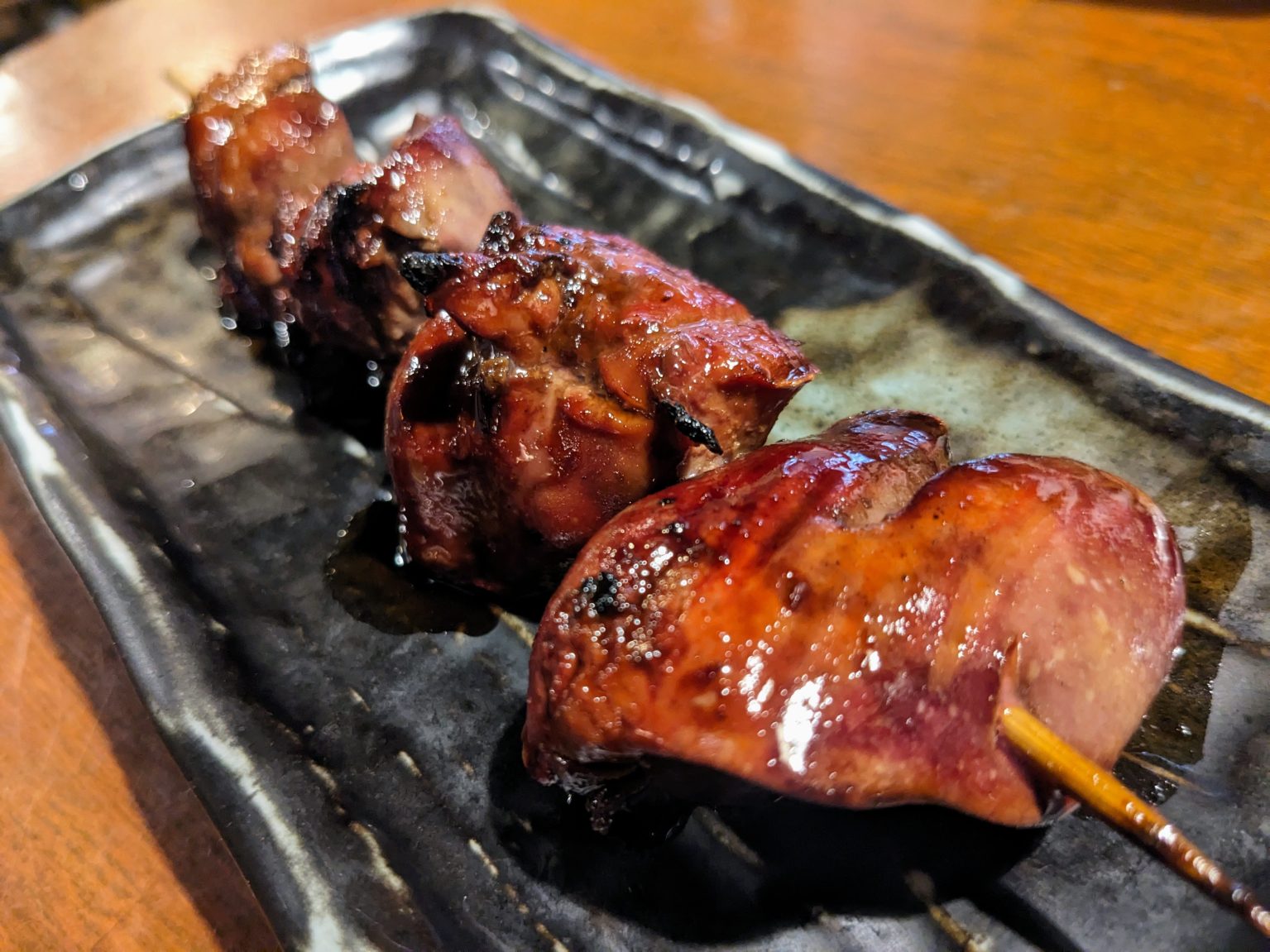 まずはこんがりと焼かれた『かわ・白レバー』から。「かわ」は外はカリッと香ばしく、噛めばジュバッと脂がしみ出す。まさにパリトロという言葉がぴたりとくる、クセになるクシ。