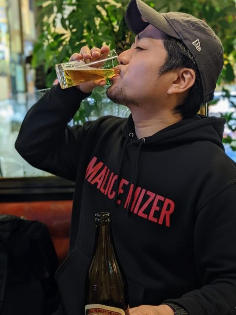 召使い……いや、スタッフの方に通されたのは、ちょっと隅にある秘密の部屋のような席。たまりませんね……どうしたって、いち早くこの席で酒を飲んでみたい。