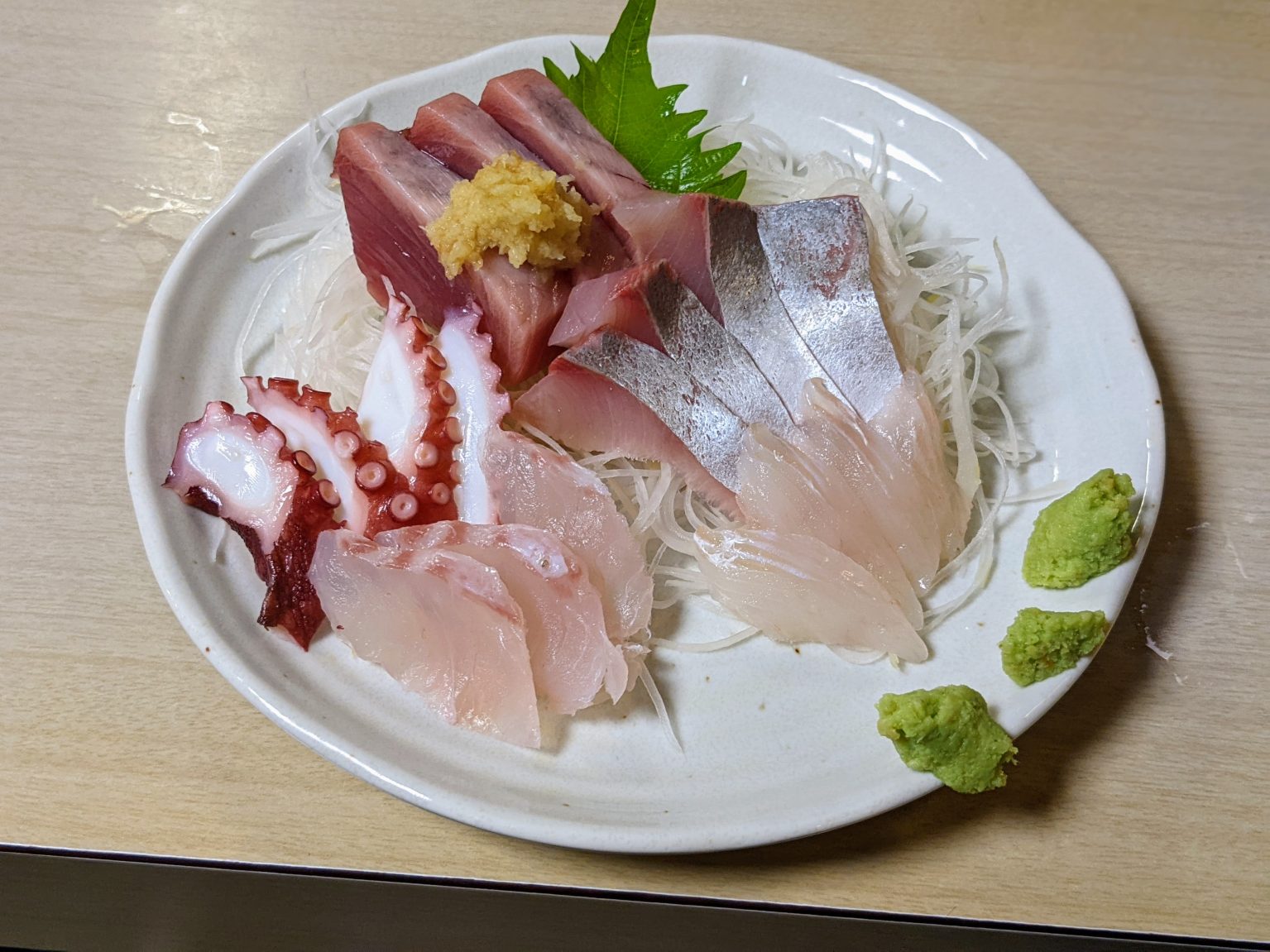 続いて『お刺身5点盛り』です! 行儀よく皿に並んだカレイ、ヒラマサ、タコ、ハタ、カツオは、どいつもこいつも新鮮であることを押し付けてくる。カレイは瑞々しくしっとりと、ヒラマサはぷりっと滋味深い。