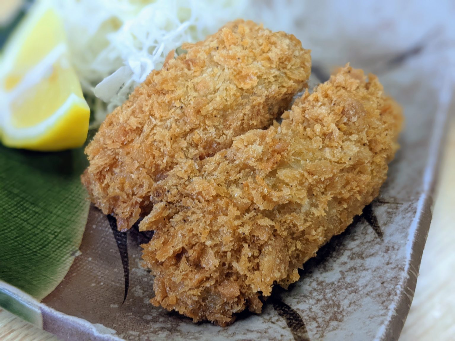 なんだこの『特大カキフライ』……ヒグマの膵臓くらいデカいぞ! 衣はサクサク、中身はじゅわっとクリーミーで、極うまが溢れ出す。