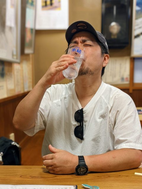 ごくんっ……ごくんっ……ごくんっ……、ううううんまっ! 強炭酸の刺激が、渇いた喉の粘膜をスカッとリフレッシュしてくれる。冷えたグラスが手のひらに吸い付く感覚がたまらない。沼津から三島へと続いた旅の終わりの緊張が、冷たい飛沫と共にゆっくりと解けていく。まさに心地よい、至福の一打席目。これさえあれば、値段のないメニュー表など、もはや恐るるに足りない。