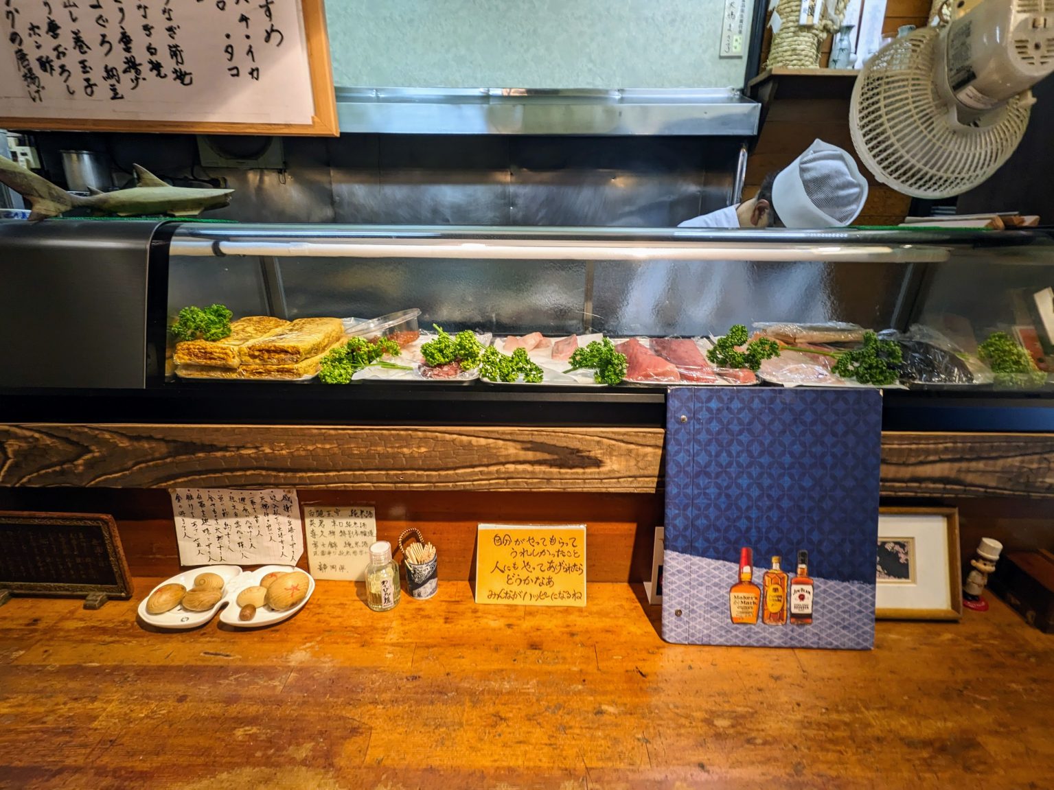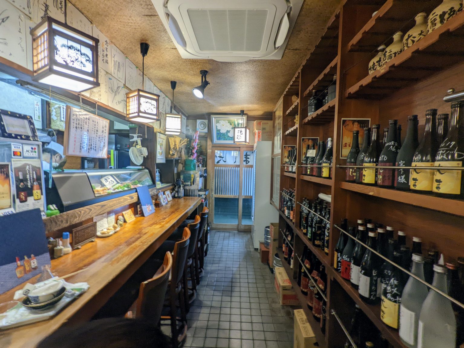 軒先に無造作に置かれた自転車と、年月を経て角が取れた看板。これこそが、長きにわたり地元民の日常と業を支えてきた証左だ。気取った装飾や、客を媚びるような派手なポスターなど一切ない。ただ美味い魚を食わせるという店主の静かな意志だけが、建物の隙間から滲み出ている。この無骨な佇まいを前にして、素通りできる呑兵衛など、この世に存在するはずがない。そのひとりが私です。