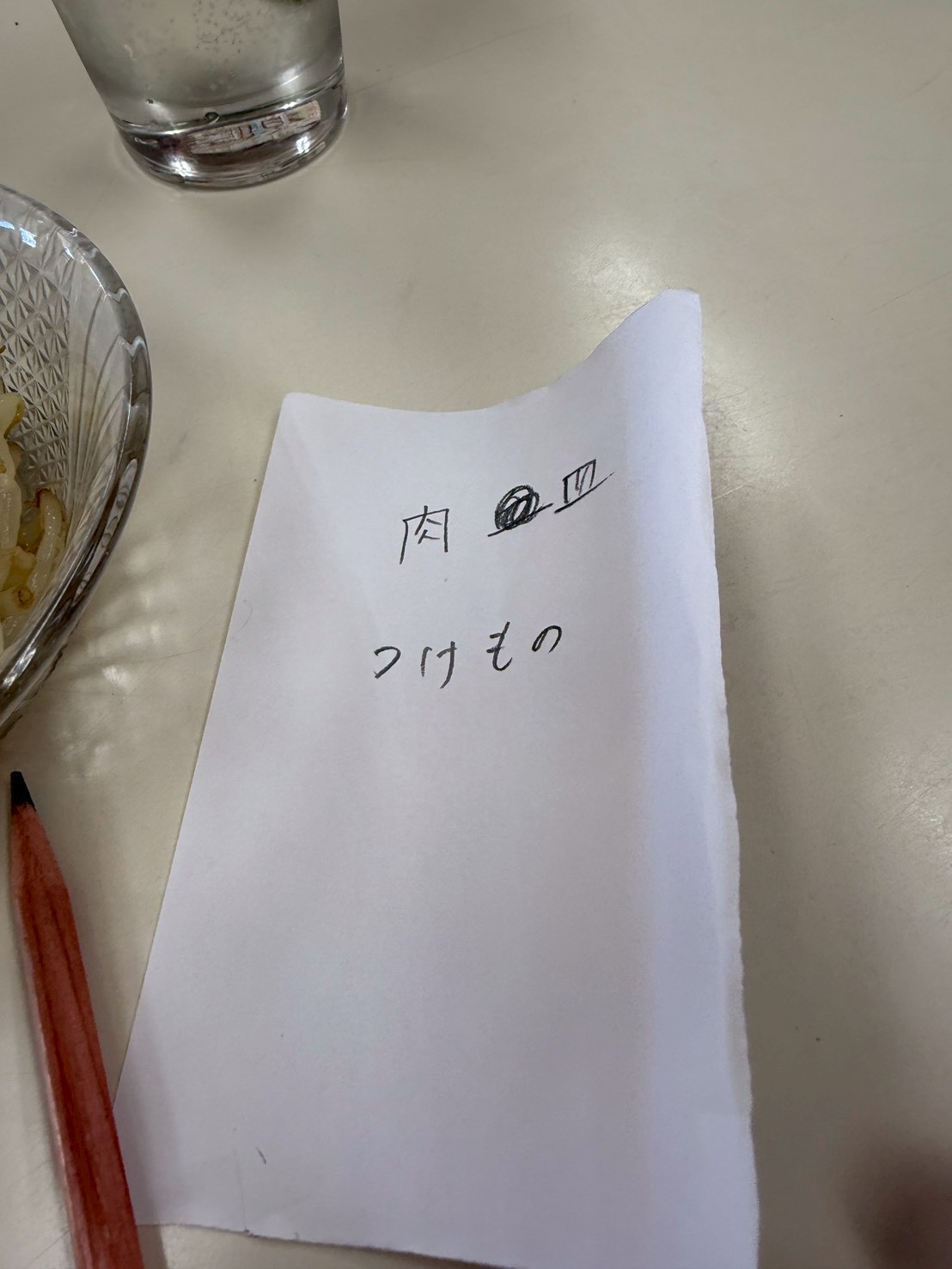 テーブルに置いてあった紙にメニューを書いて、店員さんにパス。