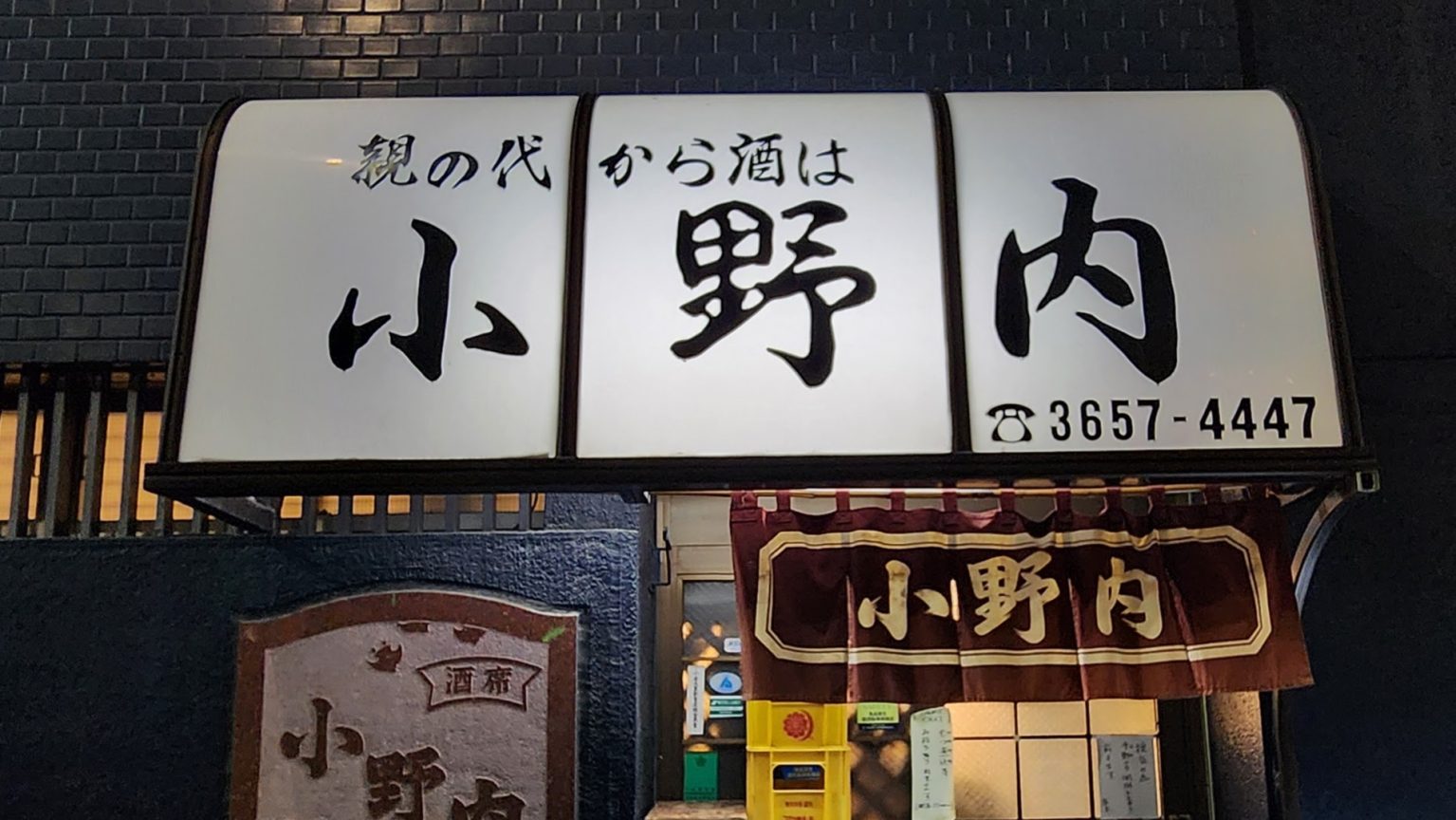小岩駅 栃錦の銅像を横目に 駅北口へ 小岩駅北通りを進み・・・ 蔵前通りを渡り ちょい右に とめ はね はらいの丁寧な書体の 看板が見えてくる 小野内おのうち 東京下町に 昭和12年から…